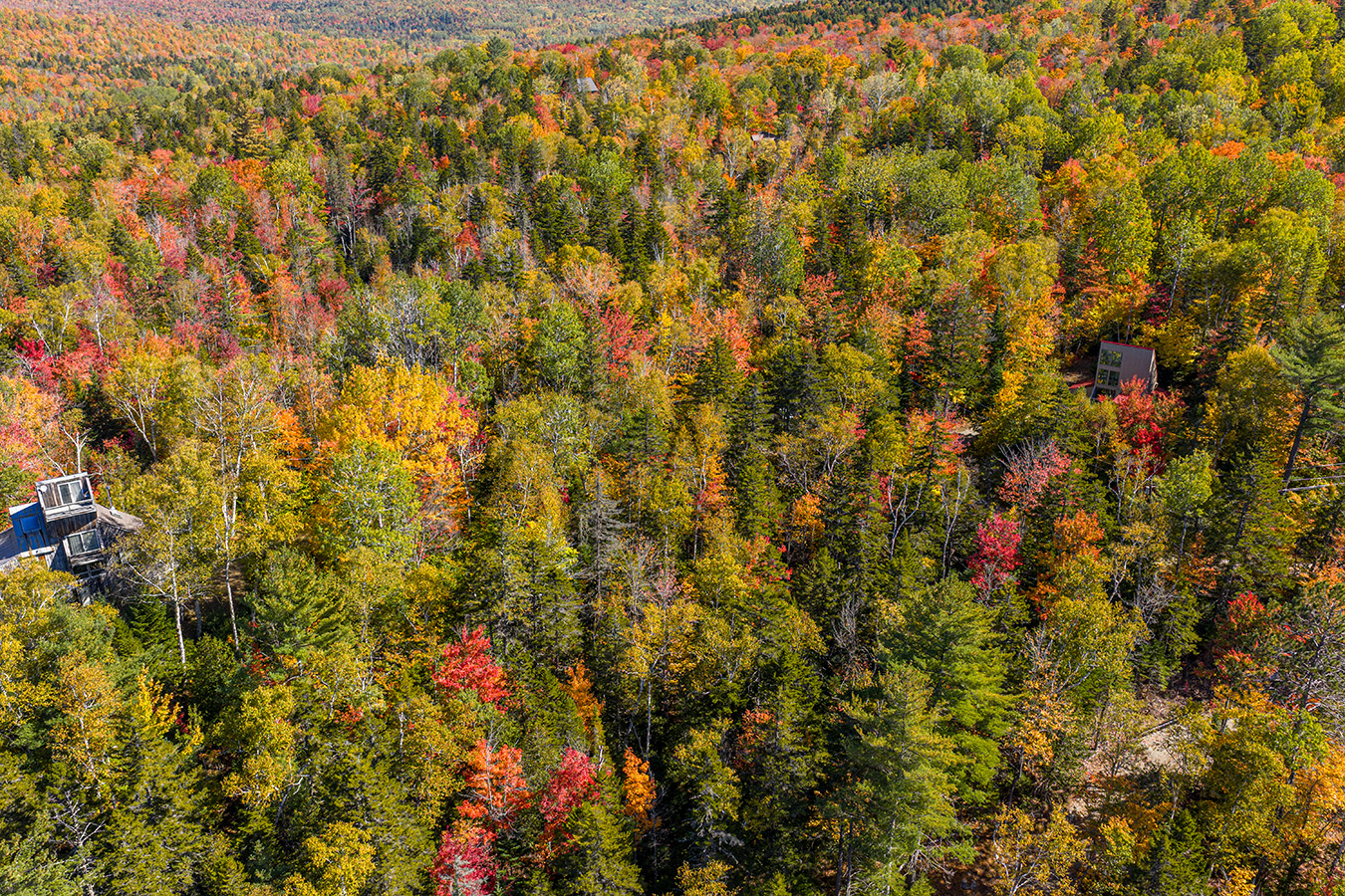 The Maine Huts & Trails network has two off-grid huts in the wilderness of Carrabassett Valley, the Stratton Brook Hut and the Poplar Hut, only accessible by hiking, cross-country skiing or mountain biking (see trail map inset below).